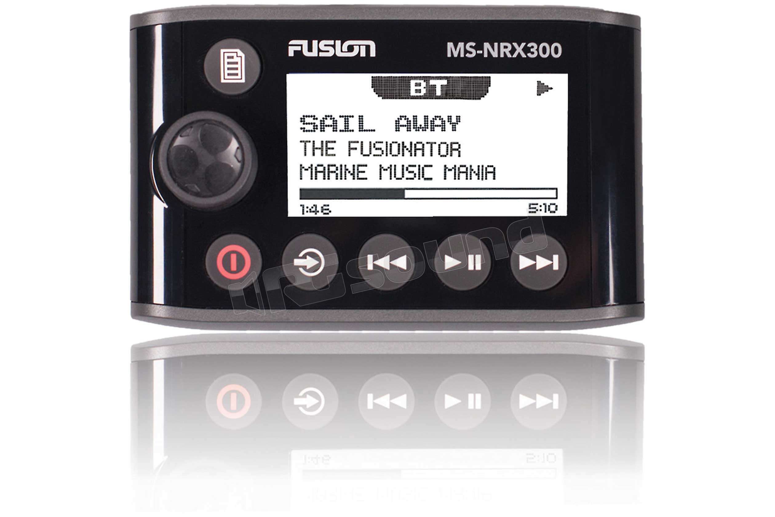 Non solo questo comando elimina la necessità di eseguire collegamenti direttamente allo stereo marino ma si ha ora la possibilità di attingere dati da altri dispositivi NMEA 2000 certificati collegati allo stesso bus NMEA e trasformare il telecomando in un ripetitore NMEA. Informazioni quali la posizione, la pressione atmosferica, la profondità, la velocità, la direzione del vento ecc., possono essere visualizzate sullo schermo LCD di 2,6" del controllo MS-NRX300.