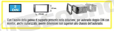 Il kit è composto da una mascherina finita in colorazione nero lucido, staffe di fissaggio per il monitor o radio 2 din e accessori.