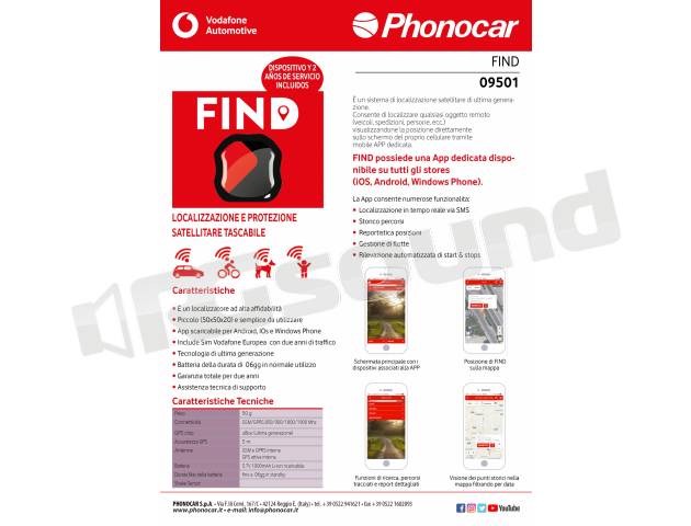 Phonocar 09501 sistema di localizzazione satellitare FIND, con 2 anni di servizi inclusi