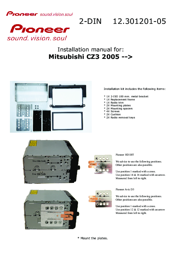 Kit di installazione 2 din per monitor Pioneer compatibile con: