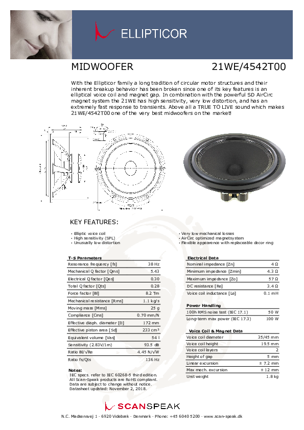 Scan Speak 21WE/4542T00 caratteristiche tecniche