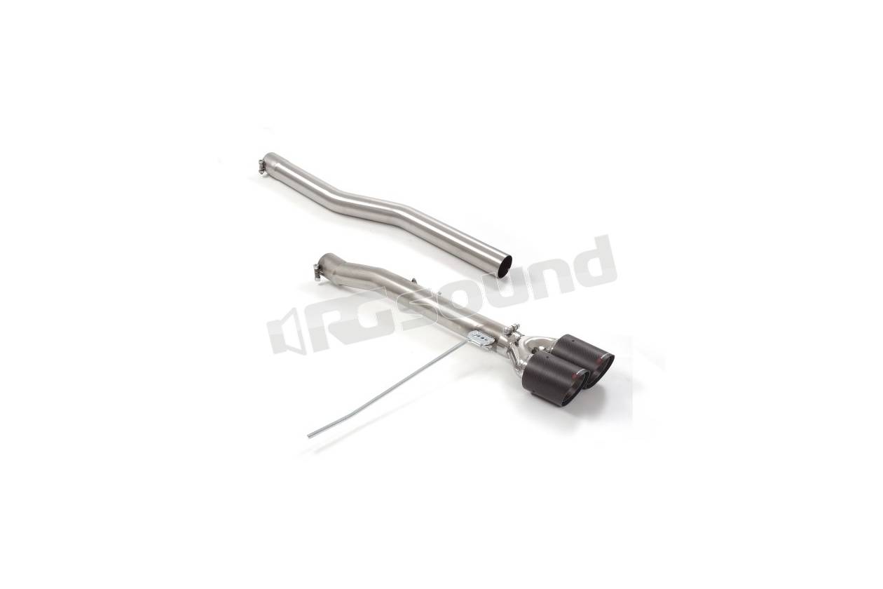 Tubo posteriore Gr. N inox con terminali rotondi 2x100 mm. Carbon Shot. Linea maggiorata diametro 70 mm. Taglio ed innesto - Riduzione. Per montaggio su filtro GPF inclusa nel kit.