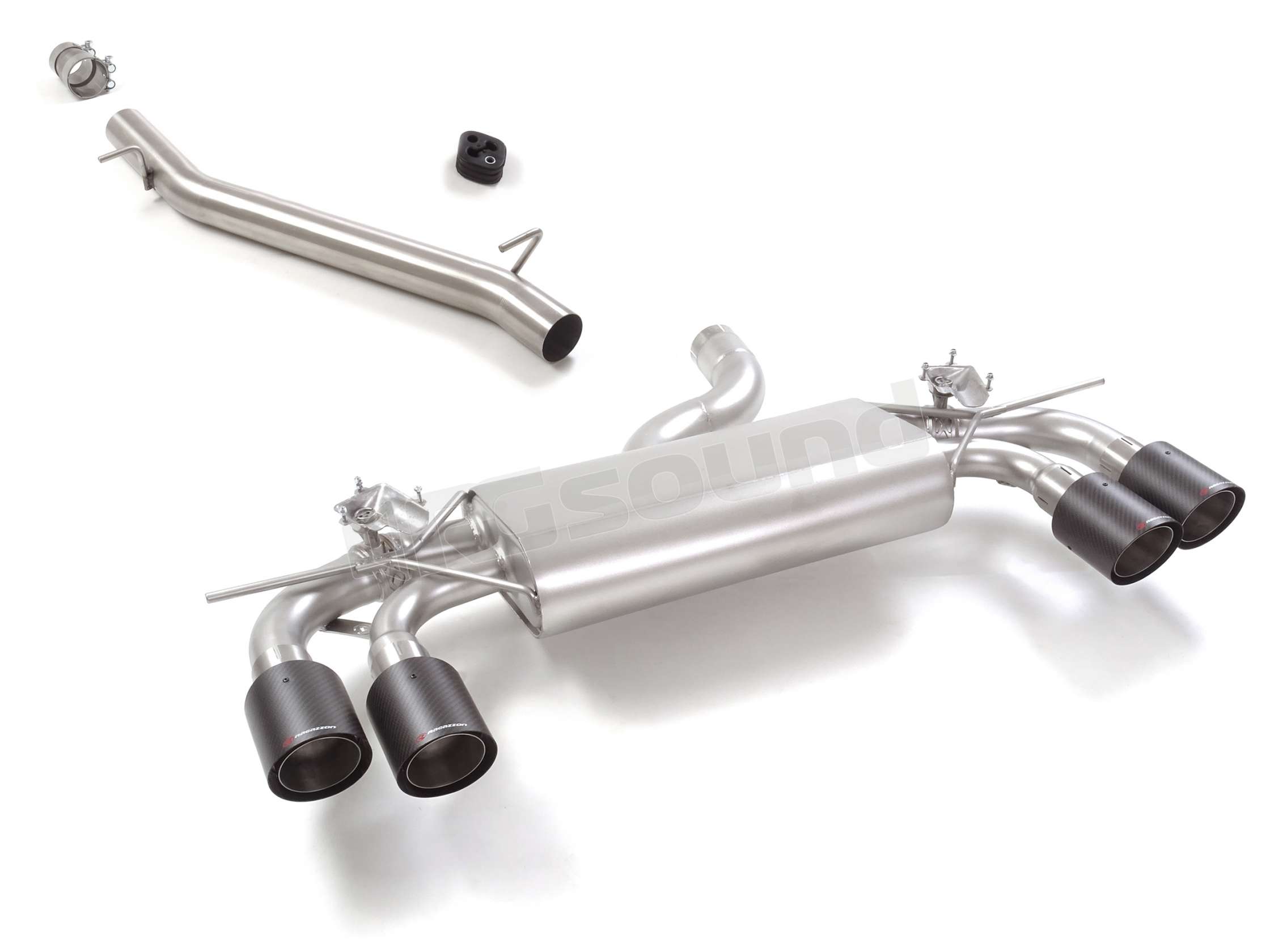 Tubo centrale inox + Posteriore inox sdoppiato con terminali rotondi 4 / 100 mm Carbon Shot, con valvole integrate.Il controllo della valvola avviene tramite il motorino della valvola originale. Linea maggiorata diametro 76 mm.