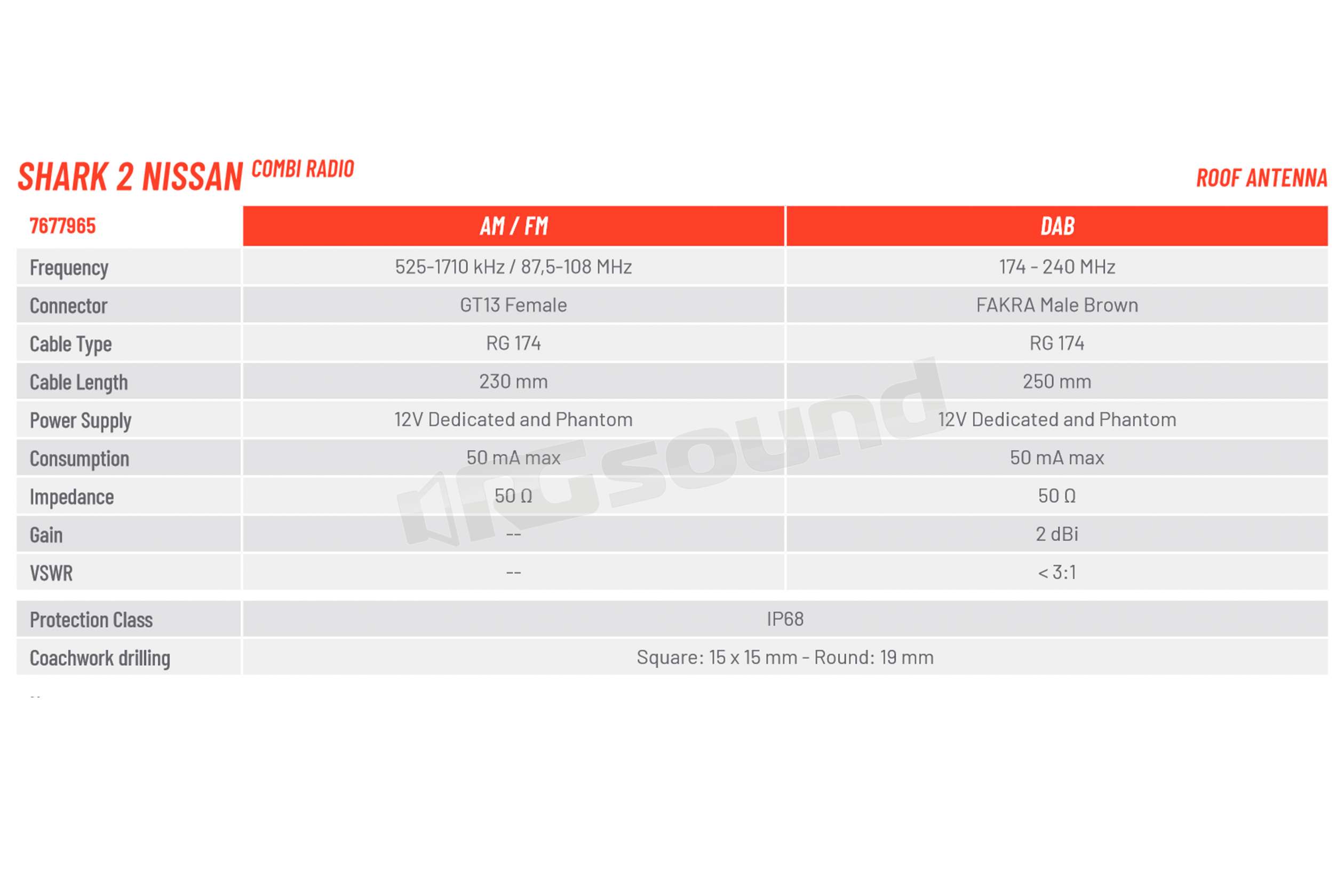 Calearo 7677965 antenna bifunzione a pinna Shark 2 specifica per Nissan, riceve il segnale AM/FM e DAB.
