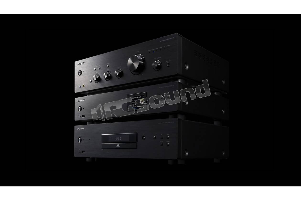 A-30-K ha il pannello frontale in alluminio spazzolato e vanta manopole di alluminio nere lucide per il controllo del volume, bassi / alti / bilanciamento e la regolazione della sorgente d'ingresso, mentre una serie di pulsanti a LED blu mettono a punto l'intensità sonora, il diffusore A/B, la modalità Power Amp Direct e confermano la sorgente d'ingresso scelta.
