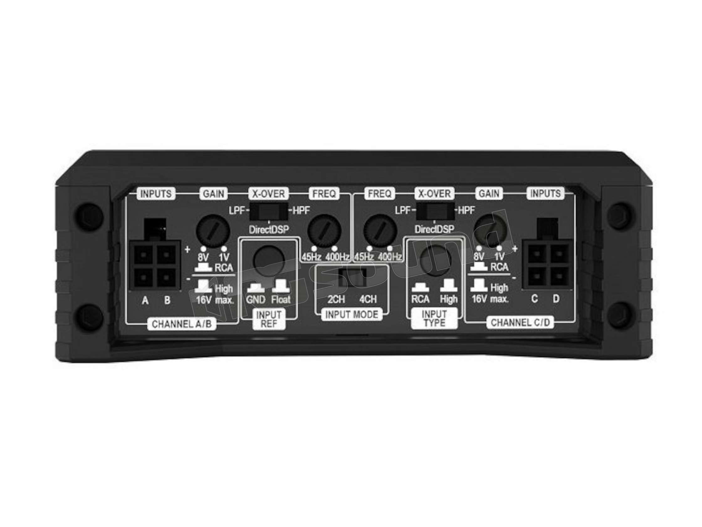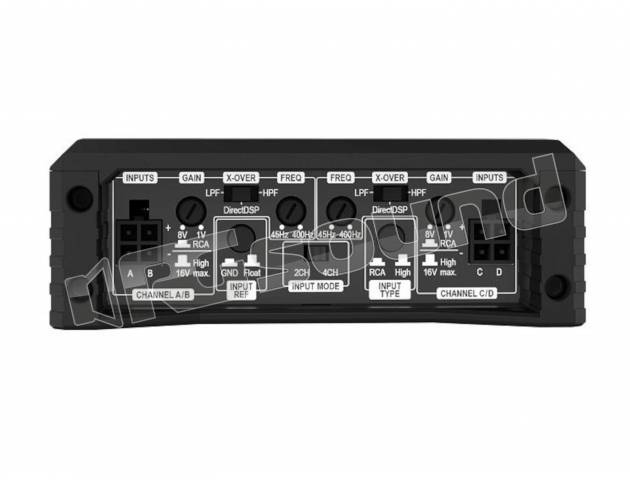 Gli ingressi High-Level e RCA selezionabili, con sensibilità fino a 16 V, assicurano una perfetta integrazione con qualsiasi sorgente. Il circuito ADEP.3 garantisce la compatibilità con autoradio OEM, mentre la funzione Auto Turn-On semplifica l’installazione. La funzione DirectDSP consente di bypassare completamente il crossover interno, inviando il segnale non filtrato allo stadio finale: soluzione ideale per futuri upgrade con DSP esterno.