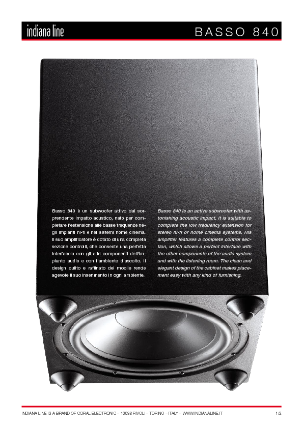 Indiana Line Basso 840 è un subwoofer attivo dal sorprendente impatto acustico, nato per completare l’estensione alle basse frequenze negli impianti hi-fi e nei sistemi home cinema.