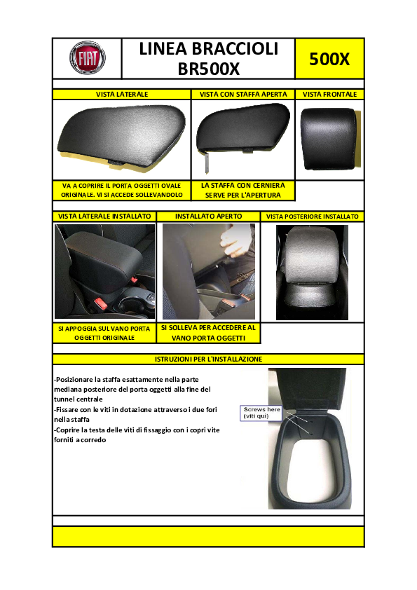 BR500X bracciolo per Fiat 500X che poggia sul vano porta oggetti originale