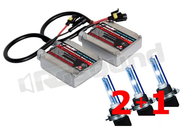 Kit xenon composto da 2+1 lampadine allo xenon con base in metallo attacco H7 da 6000° K, 2 ballast di 4° generazione e relativi cavi di collegamento