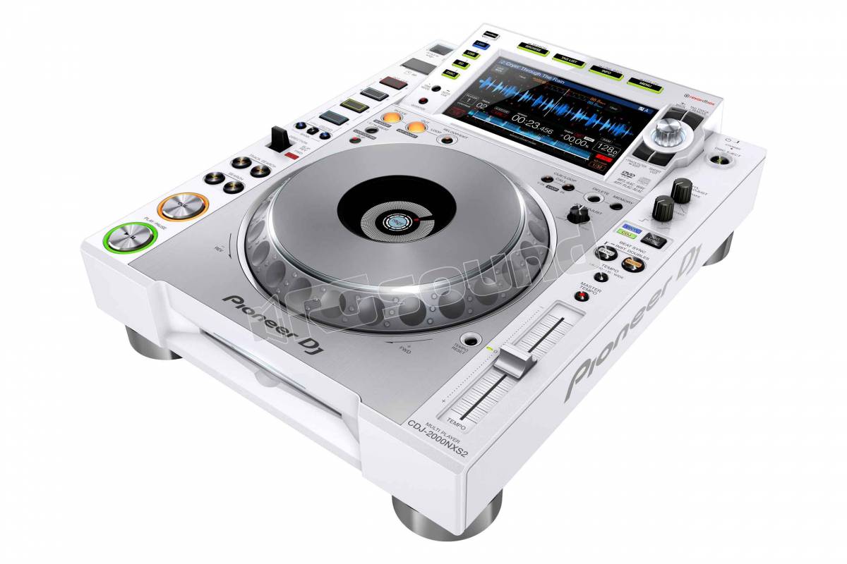 Pioneer CDJ-2000NXS2 multilettore Pro-DJ con grande schermo touch-screen multicolor e supporto dell'audio ad alta risoluzione, finitura bianca.