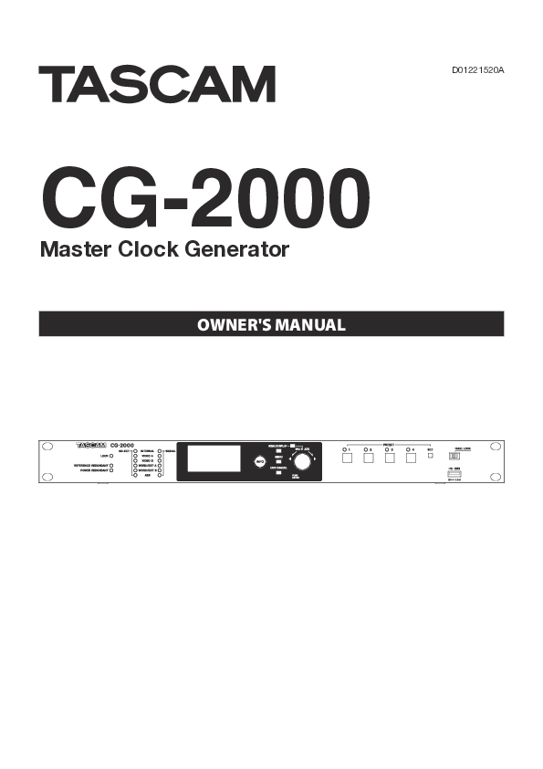 TASCAM CG-2000 è un dispositivo in grado di generare un unico segnale di sincronizzazione univoco per l'intero studio di registrazione. Grazie ai vari setup potrà fornire a tutte le apparecchiature dello studio un unico codice digitale per sincronizzazione al campione.