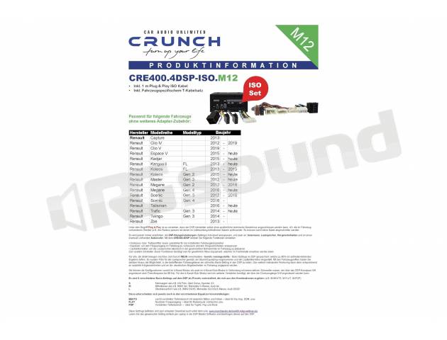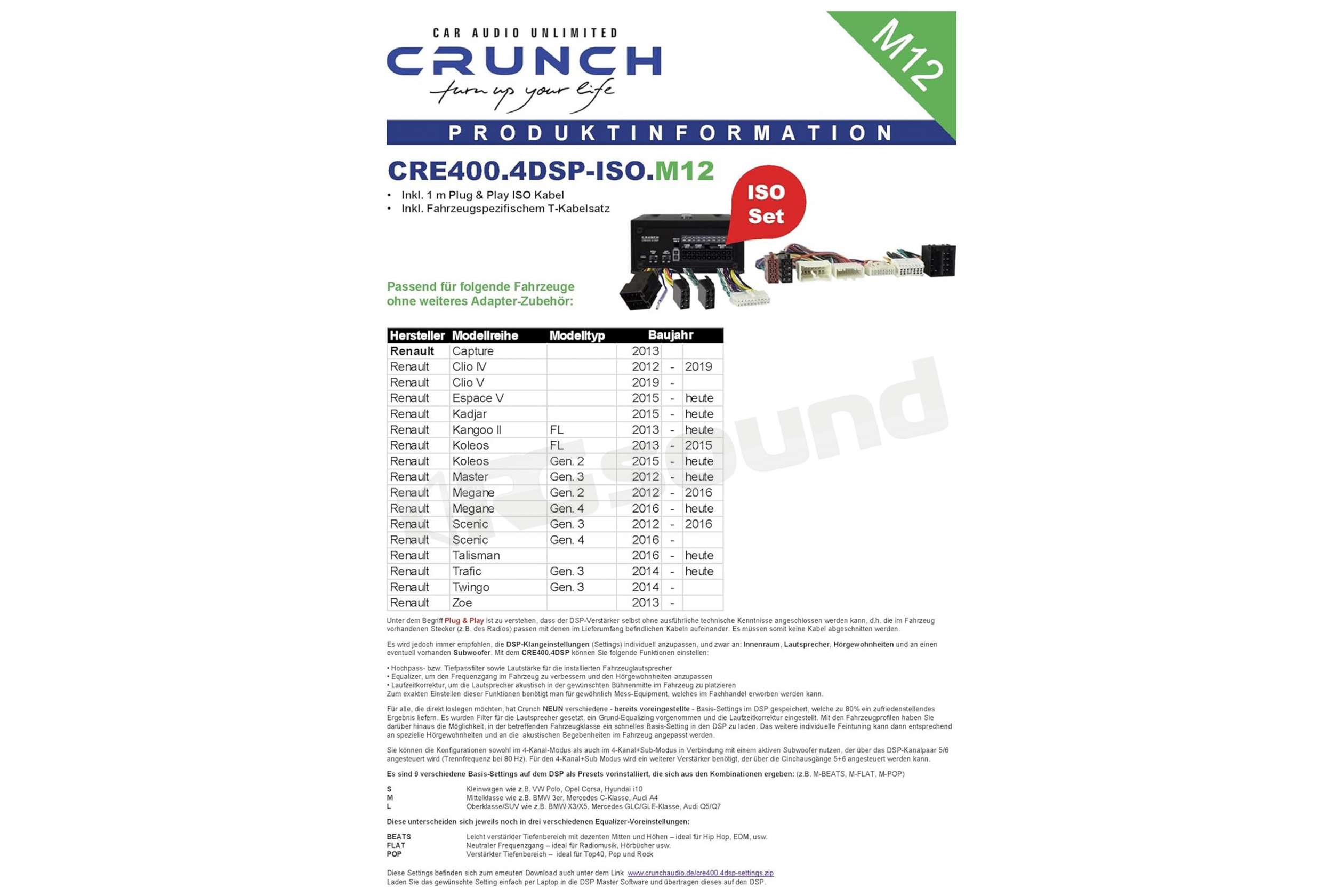 Streaming audio DP/aptX via BT | Dual Core DSP 32 bit / 122,88 MHz | funzione di accensione automatica |REM OUT |controllo DSP tramite app o PC |funzione bypass dell'amplificatore. CRE400.4DSP può essere utilizzato anche come DSP a 6 canali stand-alone.