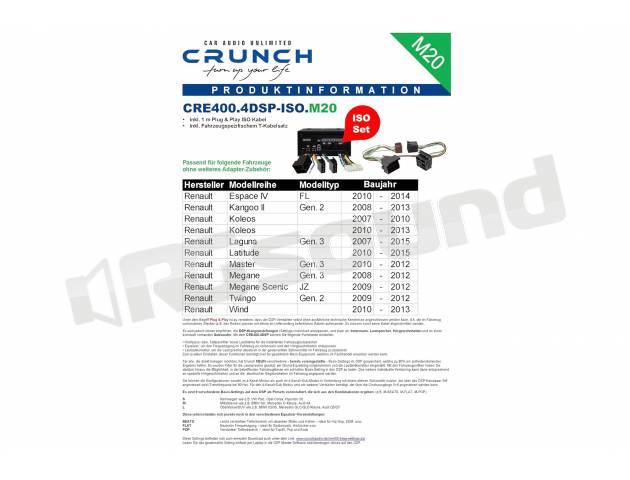 Streaming audio DP/aptX via BT | Dual Core DSP 32 bit / 122,88 MHz | funzione di accensione automatica |REM OUT |controllo DSP tramite app o PC |funzione bypass dell'amplificatore. CRE400.4DSP può essere utilizzato anche come DSP a 6 canali stand-alone.