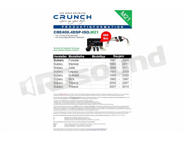 Plug & play grazie alla connessione ISO e cablaggio adattatore T abbinato, compatibile con Subaru, serie ECOMAXX | solo in combinazione con il sistema audio standard