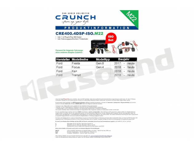 Streaming audio DP/aptX via BT | Dual Core DSP 32 bit / 122,88 MHz | funzione di accensione automatica |REM OUT |controllo DSP tramite app o PC | funzione bypass dell'amplificatore. CRE400.4DSP può essere utilizzato anche come DSP a 6 canali stand-alone.