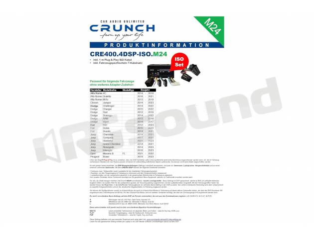 Streaming audio DP/aptX via BT | Dual Core DSP 32 bit / 122,88 MHz | funzione di accensione automatica |REM OUT |controllo DSP tramite app o PC |funzione bypass dell'amplificatore. CRE400.4DSP può essere utilizzato anche come DSP a 6 canali stand-alone.