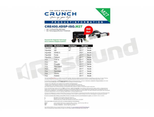 Plug & Play grazie al connettore ISO e cablaggio adattatore T compatibile con Hyundai & KIA a partire dall'anno di costruzione 2017 | Serie ECOMAXX | solo in combinazione con il SoundStandard Sound Standard Sistema.