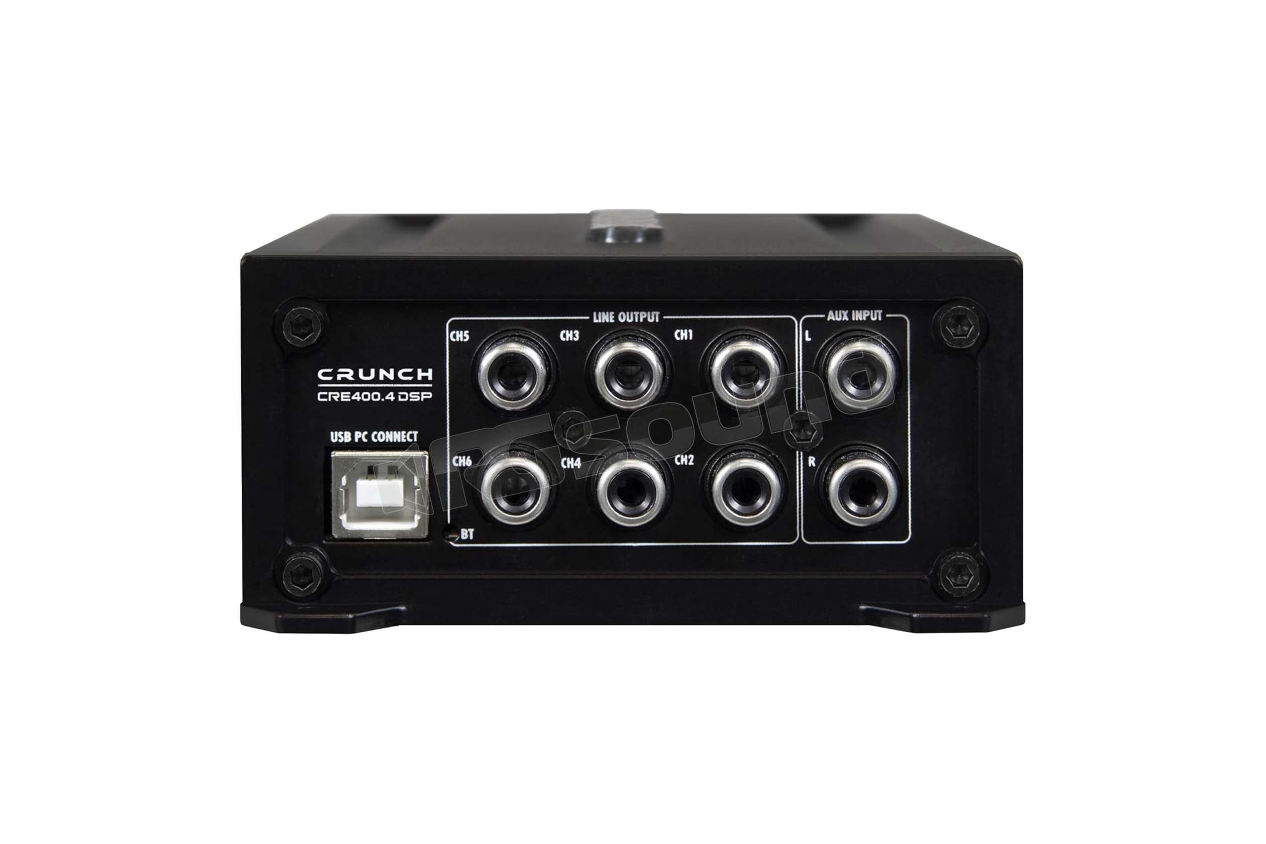 Streaming audio DP/aptX via BT | Dual Core DSP 32 bit / 122,88 MHz | funzione di accensione automatica |REM OUT |controllo DSP tramite app o PC |funzione bypass dell'amplificatore. CRE400.4DSP può essere utilizzato anche come DSP a 6 canali stand-alone.