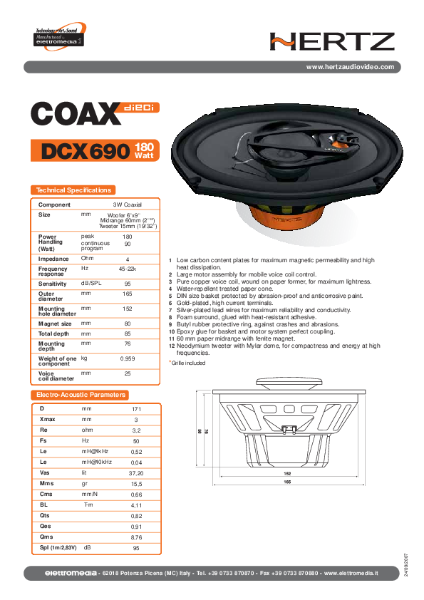 Gli altoparlanti DCX 690.3 utilizzano un gruppo magnetico sovradimensionato, un bordo in TPU (poliuretano termop ...