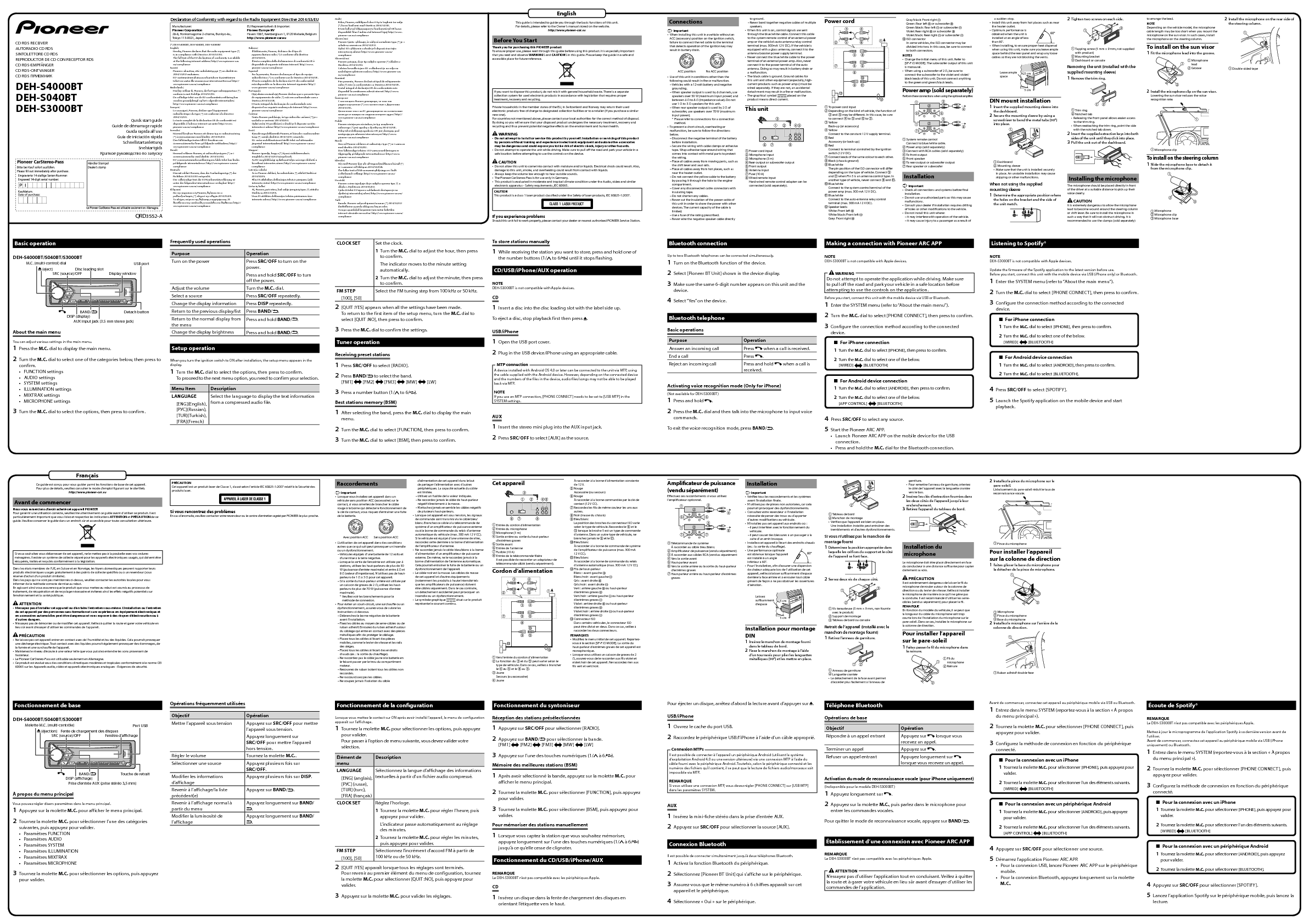 L'autoradio DEH-S4000BT tira fuori il meglio dalla tua collezione musicale. Riproduce i brani che preferisci da CD, o da smartphone (e altri dispositivi) collegati attraverso gli ingressi Aux-in e USB, con una pura e confermata potenza MOSFET di 4 x 50 W. Inoltre, puoi eseguire lo streaming wireless dei brani preferiti ed effettuare telefonate molto dettagliate in viva voce (microfono esterno in dotazione), collegando fino a due dispositivi Bluetooth contemporaneamente!