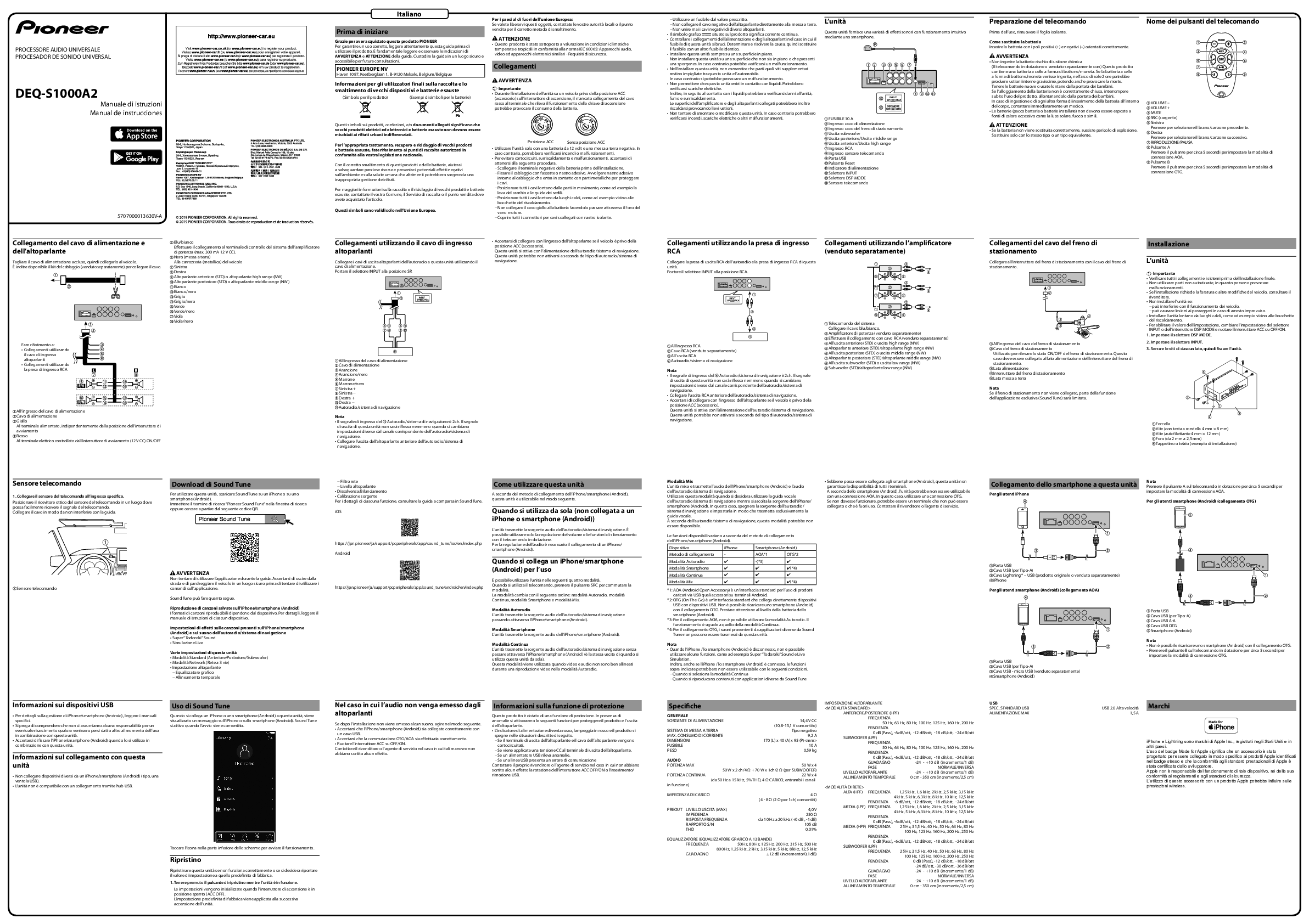 DEQ-SS1000A2 potenzia i diffusori e lo stereo del veicolo montati di fabbrica. Si connette ai dispositivi Apple iOS & Android e utilizza l’App Sound Tune di Pioneer per funzionalità audio di alta qualità. Incorpora la tecnologia DSP dual-core a 48 bit ad alte prestazioni completamente personalizzate di Pioneer, per una riproduzione del suono superiore di alta qualità. Un clock e un pattern interni sintonizzati in modo ottimale. La degradazione del suono dovuta al rumore del jitter è completamente eliminata.