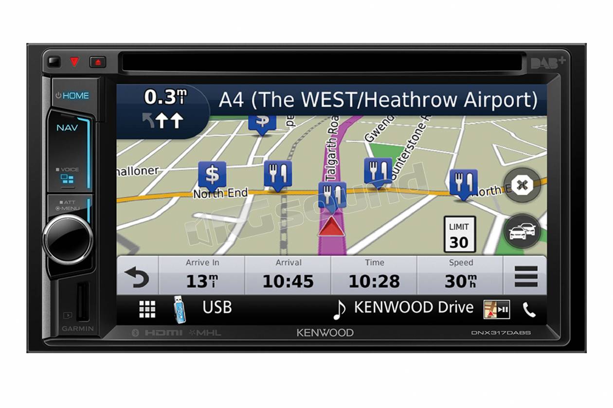 Kenwood DNX317DABS sistema di navigazione 6.2" con lettore CD/DVD e tuner DAB+ integrato (antenna DAB opzionale), monitor Touch Screen resistivo anti riflesso, illuminazione variabile, Bluetooth integrato con connessione due telefoni e riproduzione audio di alta qualità, USB con screen mirroring (per Android) ricarica rapida e connessione iPod/iPhone, compatibile Apple Car Play, Spotify App ready, Kenwood Remote App Ready