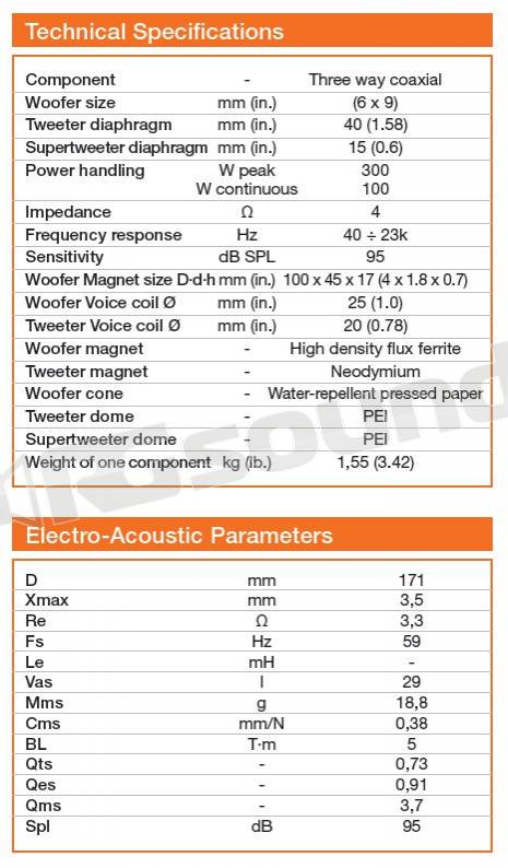 ECX 690.5 è un coassiale a tre vie, equipaggiato con un tweeter a cupola con magnete ad alta energia e un supertweeter in PEI con crossover integrato, per offrire la massima efficienza ed un’elevata estensione alle alte frequenze.