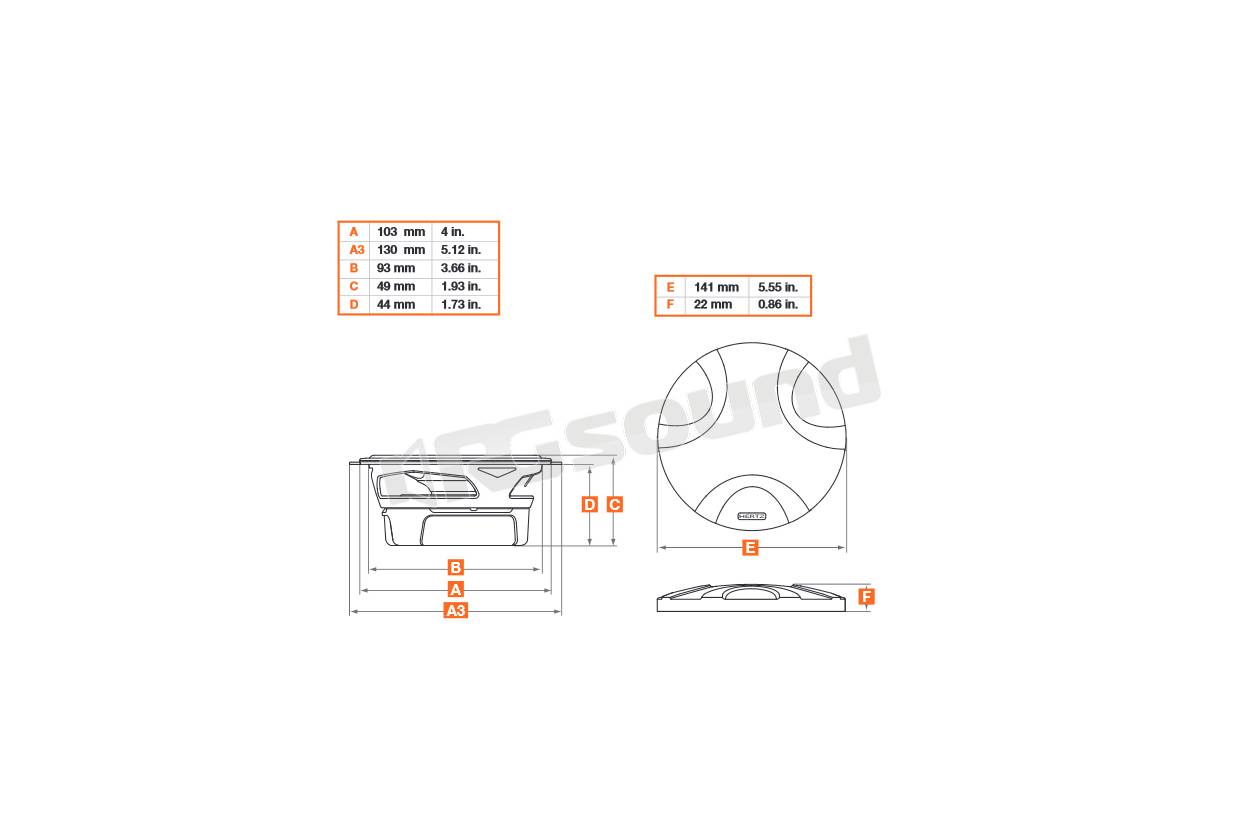 1. Cupola in Tetolon a profilo semisferico con surround ad ampia volta; estremamente leggera e acusticamente ben isolata per una risposta in frequenza morbida ed estesa alle alte frequenze.