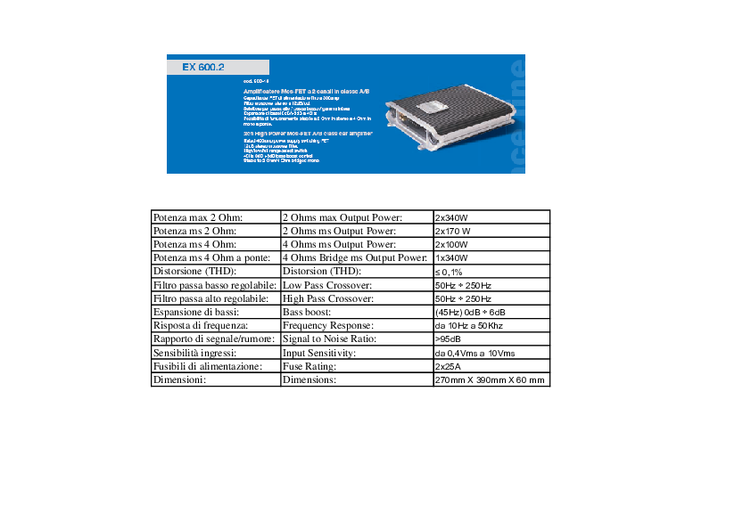 Possibilità di funzionamento stabile a 2 Ohm m in stereo e 4 Ohm in mono a ponte