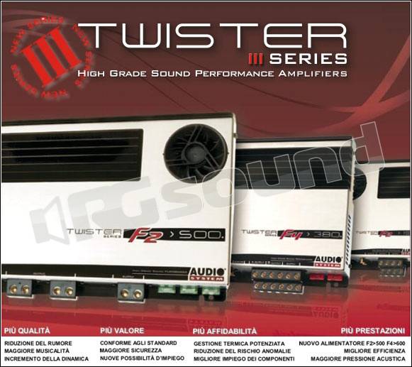 F4 380 è utilizzabile in mono a ponte come tutti gli amplificatori Twister, eroga 2x290 Watt RMS @ 4ohm.