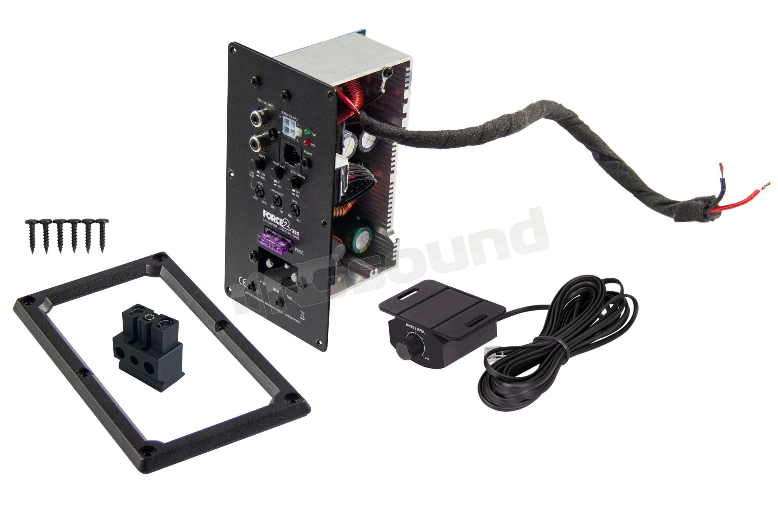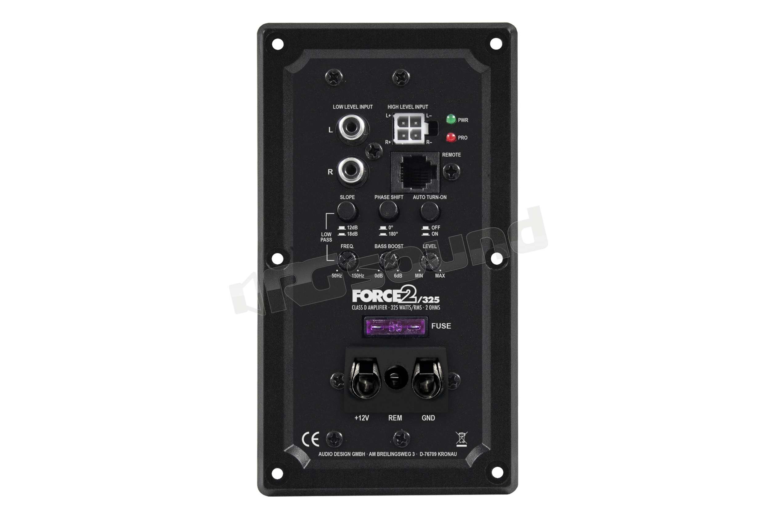 Grazie alla tecnologia in Classe D, il modulo amplificatore compatto raggiunge un'efficienza eccezionale fino all'87% – il che significa massima potenza con perdite di potenza minime. Per una regolazione ottimale del suono, sono disponibili filtri passa-basso variabili con pendenze di 12 o 18 dB, potenziamento dei bassi e un commutatore di fase. Il segnale può essere immesso tramite ingressi RCA o di alto livello. Naturalmente, il FORCE2/325 dispone anche di una funzione di accensione automatica che si attiva in presenza di un segnale audio. Ciò rende possibile praticamente qualsiasi collegamento a un sistema audio di serie esistente.