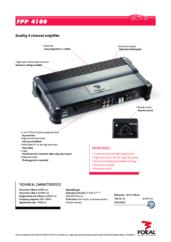 - 90 watts RMS CEA-2006 x 4 at 4 ohms