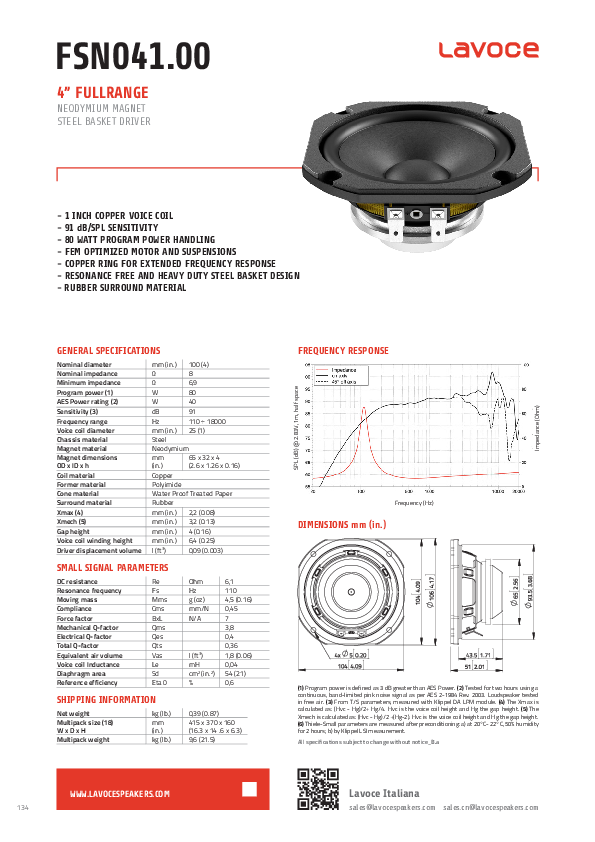 LaVoce FSN041.00 Specifiche tecniche