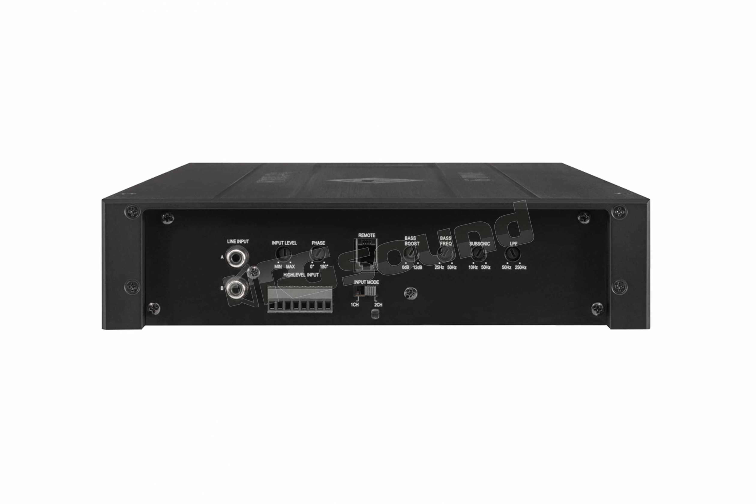 Funzioni aggiuntive Crossover attivo, regolabile, bass boost, interruttore della modalità di immissione, ingresso di livello superiore con funzione di accensione automatica e protezione degli errori di diagnostica avanzata (ADEP), funzionalità Start-Stop, controllo remoto del volume dei bassi