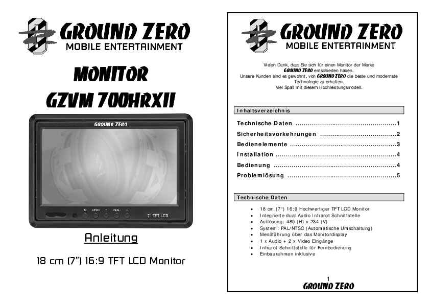 GZVM 700HRXII monitor 18 cm (7”) 16:9 TFT LCD