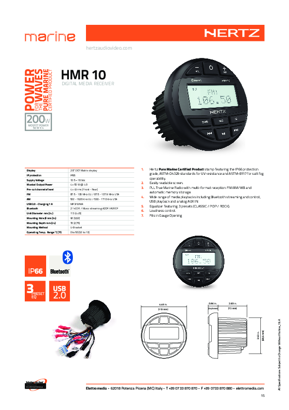 Hertz HMR 10 Sorgente nautica multimediale con USB e Bluetooth
