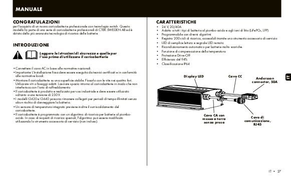 CTEK I-2420 offre anche la compensazione intelligente per perdita di cavo per una ricarica più veloce e impiega una tecnologia avanzata per la sua modalità di commutazione ad alta frequenza. Grazie a un’efficienza di conversione fino al 94%, il CTEK I-2420 è caratterizzato da basse emissioni di CO2 e ridotto consumo di potenza in generale.