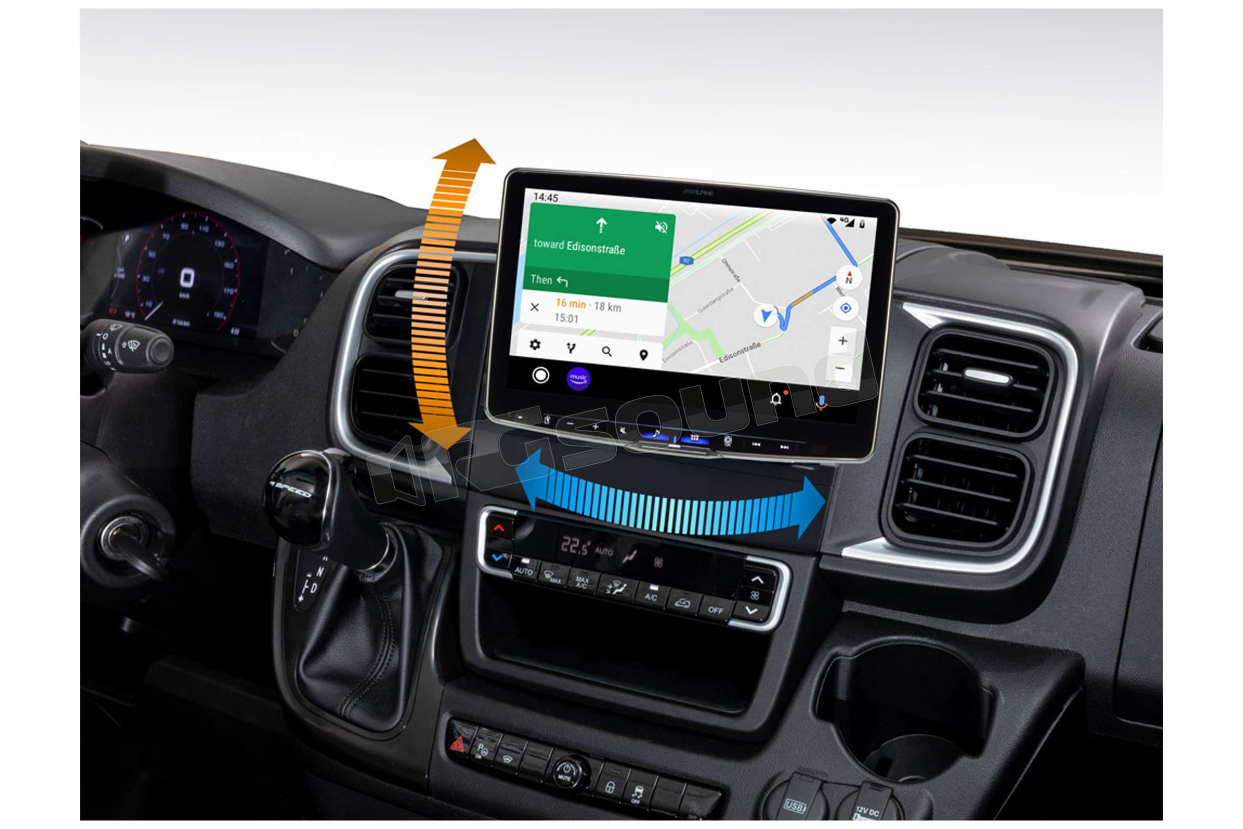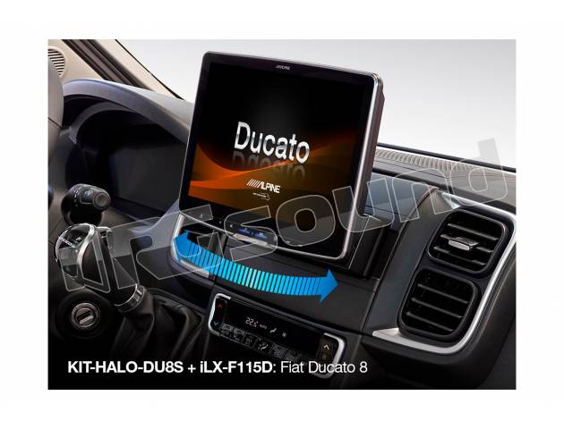 Alpine offre un ricevitore multimediale da 11 pollici su misura per Fiat Ducato 8, con radio digitale DAB+ e compatibilità con Apple CarPlay e Android Auto, che si adatta perfettamente alla plancia e all'elettronica del Ducato. Tutti i componenti necessari per l'installazione sono inclusi per semplificare il montaggio. L'iLX-F115DU8S Alpine Halo11 per il Fiat Ducato 8 è la seconda generazione della linea di prodotti Halo di Alpine, famosa in tutto il mondo, con un touch-screen WXGA ad alta risoluzione da 11 pollici e viene fornito con tutti i componenti necessari per l'installazione (come il cablaggio plug-and-play, l'interfaccia CAN, la cornice, ecc.). Il display super sottile sembra semplicemente sospeso sul cruscotto e può essere regolato in vari modi per ottenere la posizione migliore. In questa versione il display può essere inclinato verso l'alto e verso il basso, nonché ruotato a destra e a sinistra per consentire al conducente e al passeggero un'eccellente visibilità dello schermo.