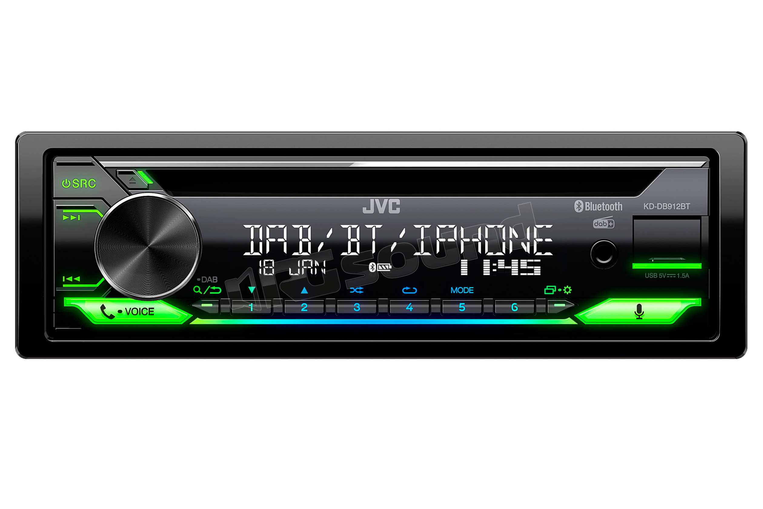 JCV KD-DB912BT Sintolettore CD con BT, tuner DAB+ (antenna opzionale) , Android ready e iPod Iphone ready, Siri Eyes Free, USB, AUX, compatibilità comandi a volante, colorazione variabile . 3 preout a 4 volt, DTA e DSP integrati . Supporta assitente vocale Amazon Alexa.