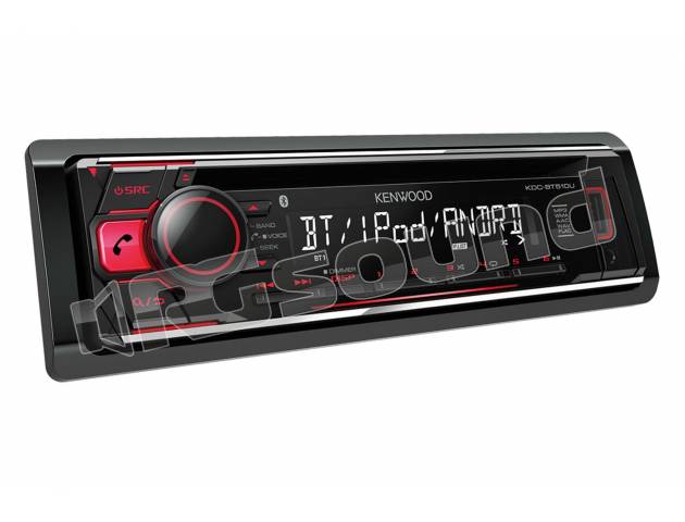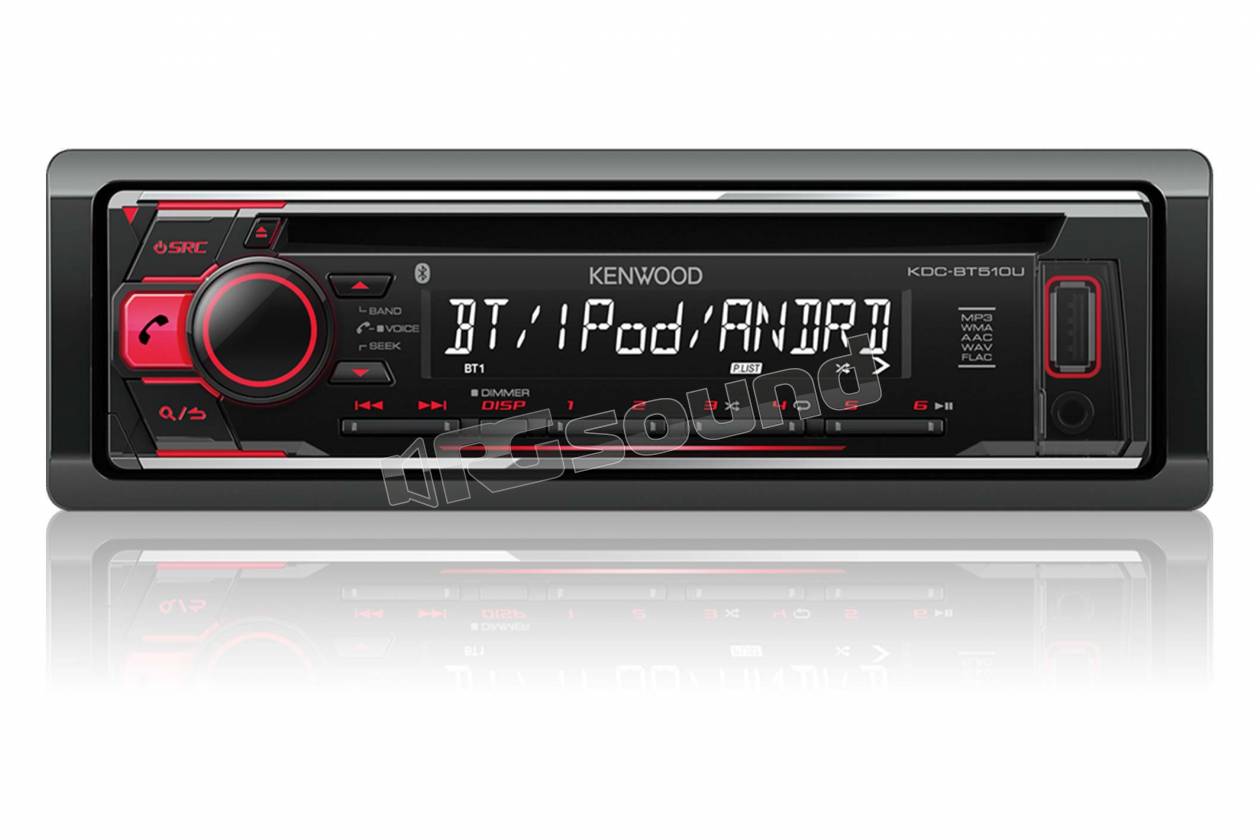 Kenwood KDC-BT510U sintonizzatore 1 Din con lettore CD, Bluetooth integrato, ingressi Aux e USB frontali con lettura dei file FLAC, illuminazione dei tasti rossa e finiture cromate.