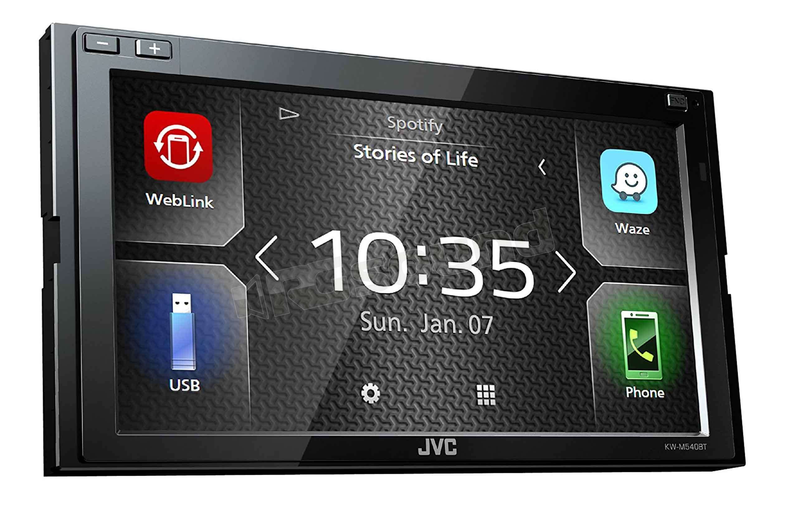 JVC KW-M540BT monitor 2 Din mechaless, predisposto per contenuti multimediali con monitor 6.8” WVGA LCD Clear Resistive Touch, Bluetooth, ingresso USB posteriore 1.5 A, Spotify ready, Waze Ready via USB , smartphone link via webLink