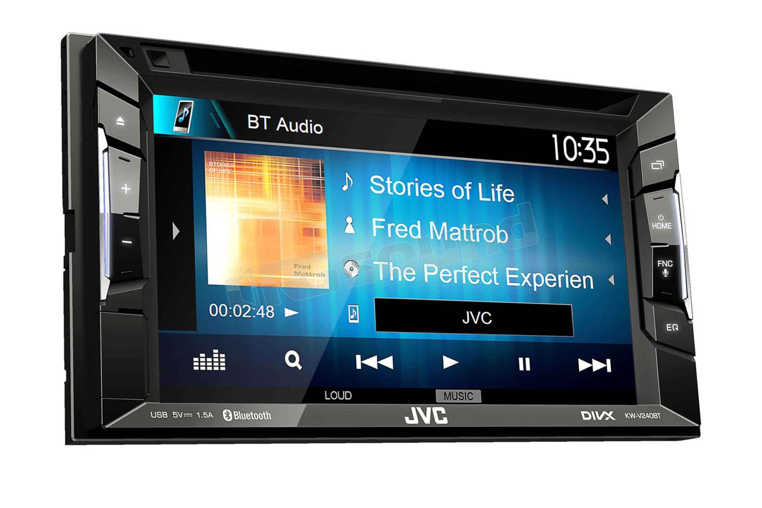 JVC KW-V240BT sintolettore audiovideo 2 Din con monitor 6.2" Clear Resistive Touch, lettore DVD/CD, porta USB, Bluetooth, DSP, compatibile Remote App e Spotify.
