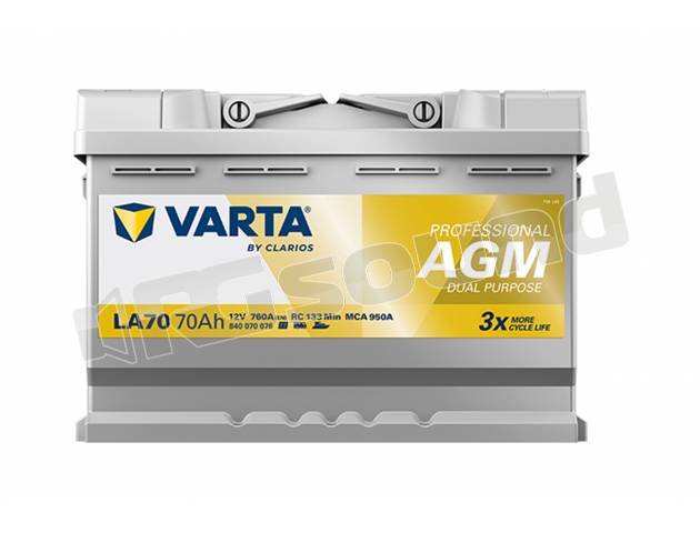 Il meglio del meglio. La batteria LA70 AGM è in grado di fornire l'energia necessaria a veicoli e accessori con elevato fabbisogno energetico e ha una durata tripla rispetto alle batterie convenzionali. È stata disegnata per soddisfare l'enorme fabbisogno energetico di veicoli dotati di sistemi Start-Stop avanzati, ad es. quelli con recupero dell'energia in frenata. L'elevata qualità costruttiva permette grandissima affidabilità, robustezza e ricariche velocissime; visto che sono progettate e prodotte in Germania, potete essere certi che sono fabbricate secondo i massimi standard qualitativi.