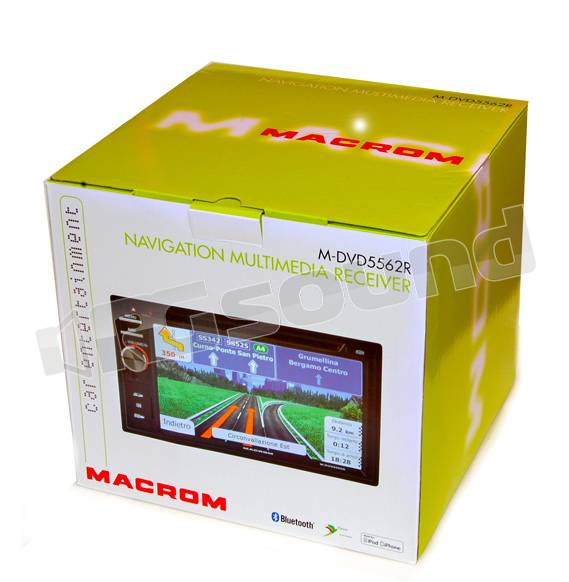 Macrom M-DVD5562R sistema multimediale con schermo 6,2" WVGA ad alta risoluzione, USB, iPod, navigazione e bluetooth integrati + licenza ufficiale mappa Europa M-NV13I62FEU gratuitamente aggiornabile all'ultima versione disponibile.