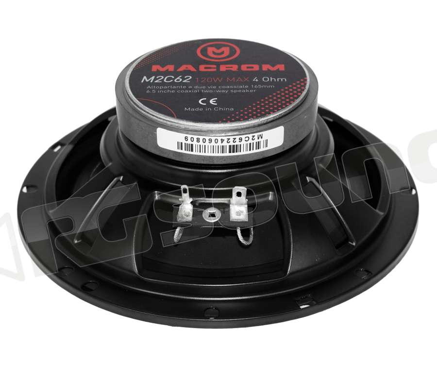 L’altoparlante coassiale a due vie Macrom M2C62 da 165 mm (6.5 pollici) è progettato per offrire un suono bilanciato e potente in sostituzione degli speaker di fabbrica. Il tweeter è dotato di una lente frontale ottimizzata per prestazioni fuori asse, garantendo una risposta in frequenza lineare anche in configurazioni OEM, per un ascolto più uniforme in abitacolo.
