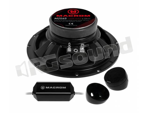 Il tweeter al neodimio da 40 mm con cupola in PEI riproduce le alte frequenze con brillantezza e la sua lente acustica ottimizzata garantisce un'immagine stereo precisa anche fuori asse. L'installazione è semplice e sicura grazie al crossover integrato da 6 dB. Con una potenza massima di 120 W e una sensibilità di 90 dB, l'M2S65 porta la rinomata qualità del suono Macrom nella tua auto, combinando prestazioni, affidabilità e piacere d'ascolto.