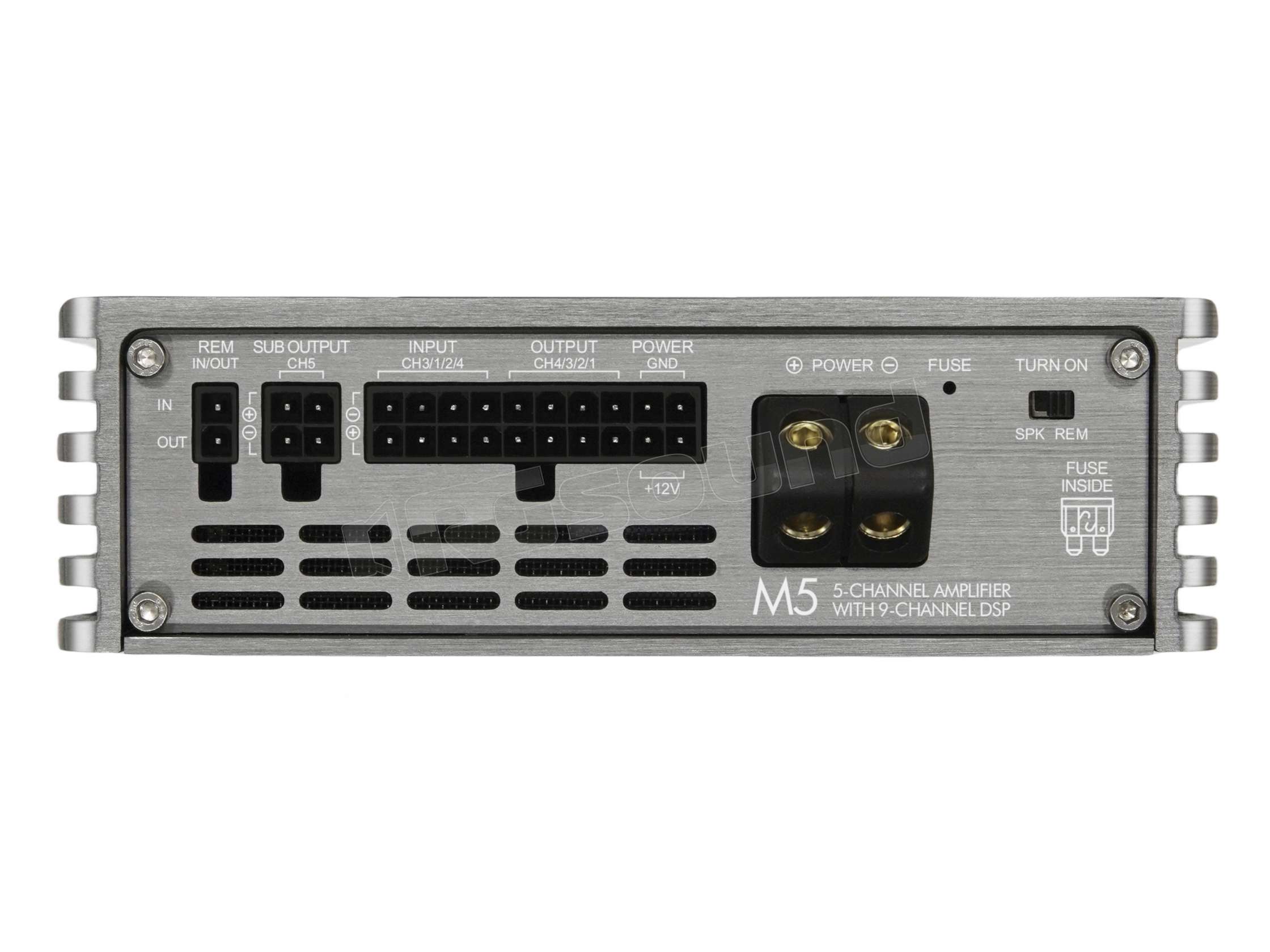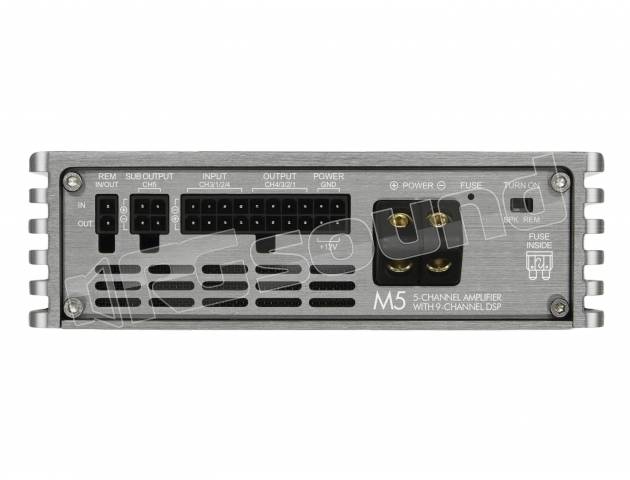 l modello M5 può essere considerato come un nuovo traguardo nella costruzione degli amplificatori. E’ difficile immaginare che in un cabinet di piccole dimensioni, ci sia un amplificatore di classe D, che nella configurazione massima, ha sei uscite ponticellabili (bridged), ciascuna con 105 watt RMS per canale (a 2 ohm). Per un totale di 630 Watt RMS, le dimensioni compatte sono rese possibili da un‘elaborata scheda a quattro strati, che elimina efficacemente le interferenze EMC grazie alla progettazione ed ingegnerizzazione, un must, soprattutto per gli amplificatori di Classe D Full-Range.