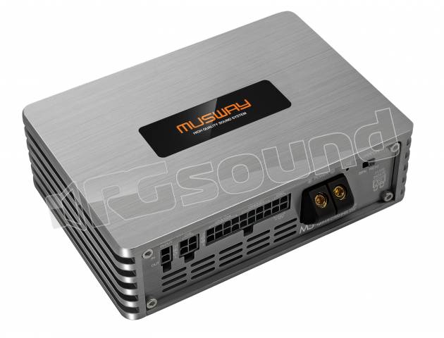 Il fulcro è il chip DSP all'avanguardia ADAU1452 di Analog Devices, che è stato messo a punto dagli ingegneri Musway e non lascia alcun desiderio audiofilo insoddisfatto. L’amplificatore è collegato tramite un cablaggio poco ingombranti con prese ISO, inoltre sono disponibili i set di cavi Plug & Play specifici per varii veicoli. Utili funzionalità aggiuntive includono il “soft-clipping” per proteggere l’elettronica e gli altoparlanti in modalità 2 Ohm. Anche di nuova concezione è l’ingresso di alto livello con “Error Protection System” che impedisce danni nei funzioni e l’archiviazione dei messaggi di errore nella memoria del veicolo.