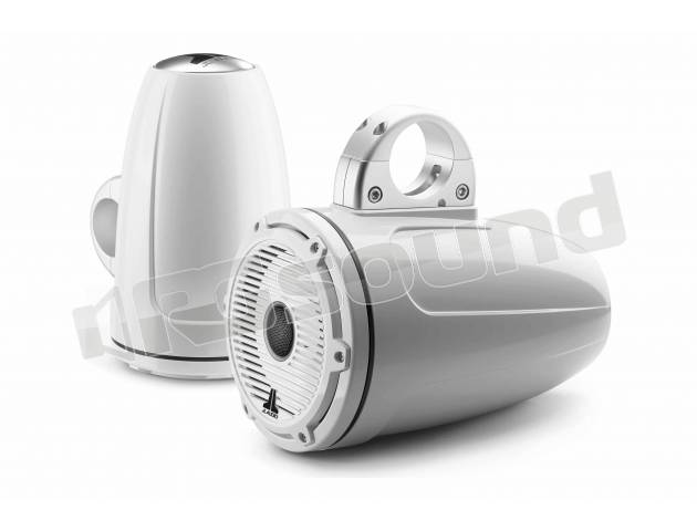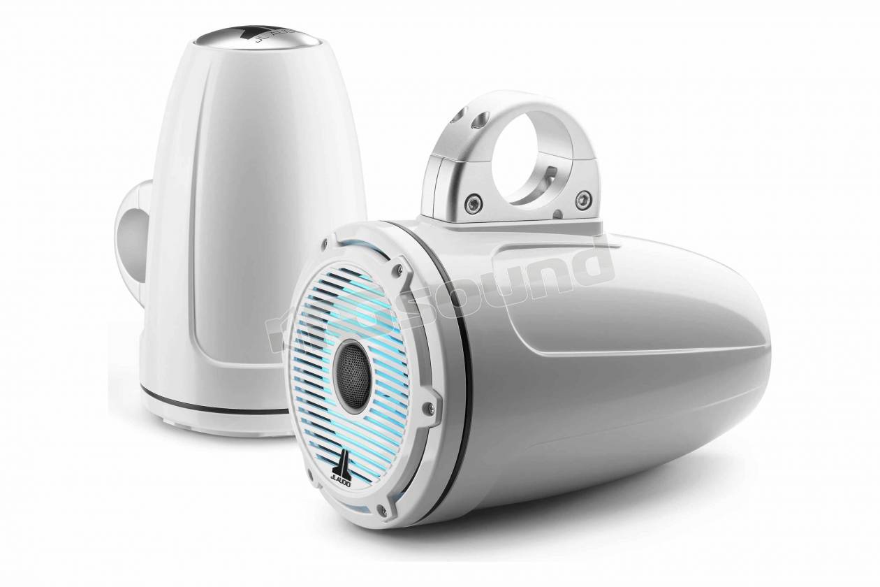 JL Audio M6-770ETXv3-Gw-C-GwGw-i coppia di altoparlanti coassiali 20cm (7.7") a torre, con illuminazione a LED, racchiusi in box bianco lucido con griglia classica.