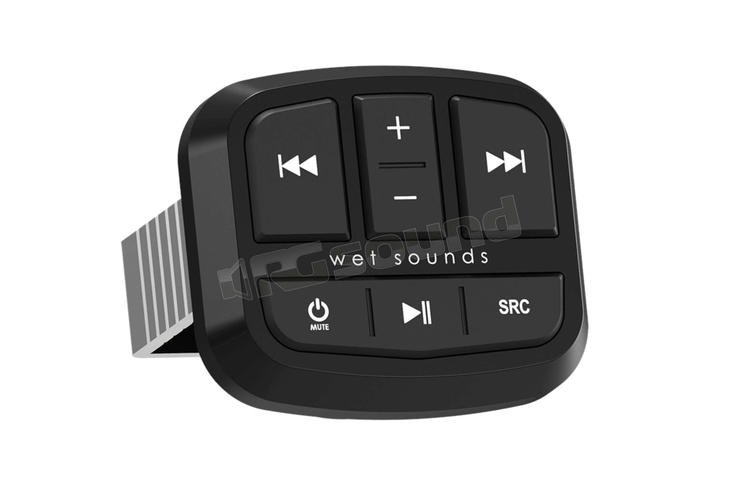 Collegate questo telecomando marino compatto, classificato IPX7, con il cavo AUX da 3,5 mm e 7,6 metri incluso e montatelo in qualsiasi posizione desideriate. Per l'utilizzo con i media center Wet Sounds MC-1 e MC-2 sono necessari un semplice aggiornamento software e un cavo adattatore da 3,5 mm a DIN (MC-TR-MINI-ADP).